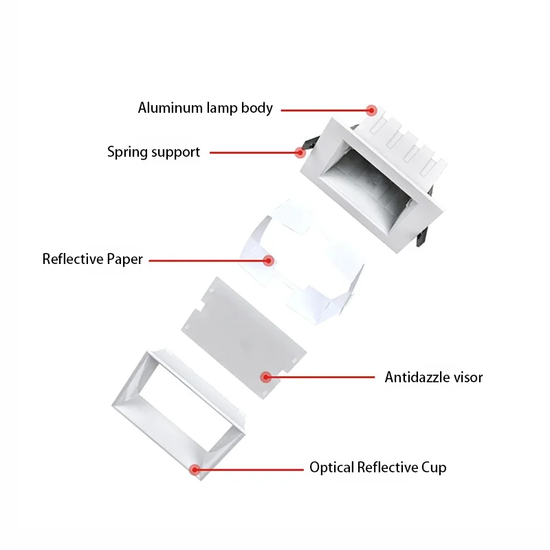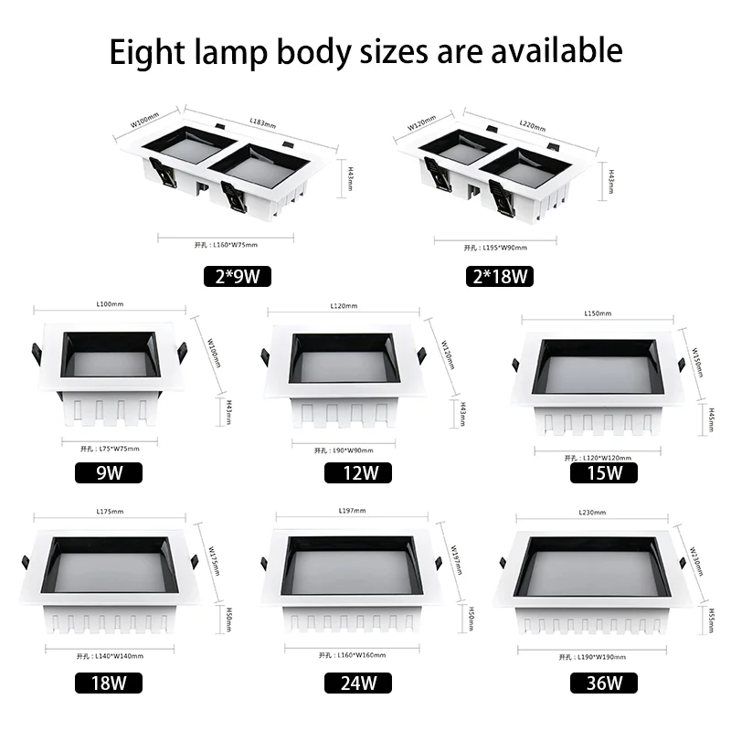 Modern Square Recessed LED Downlights Full-Spectrum Eye-Protecting Chip Aluminum Construction Downlight Recessed Cob Light
